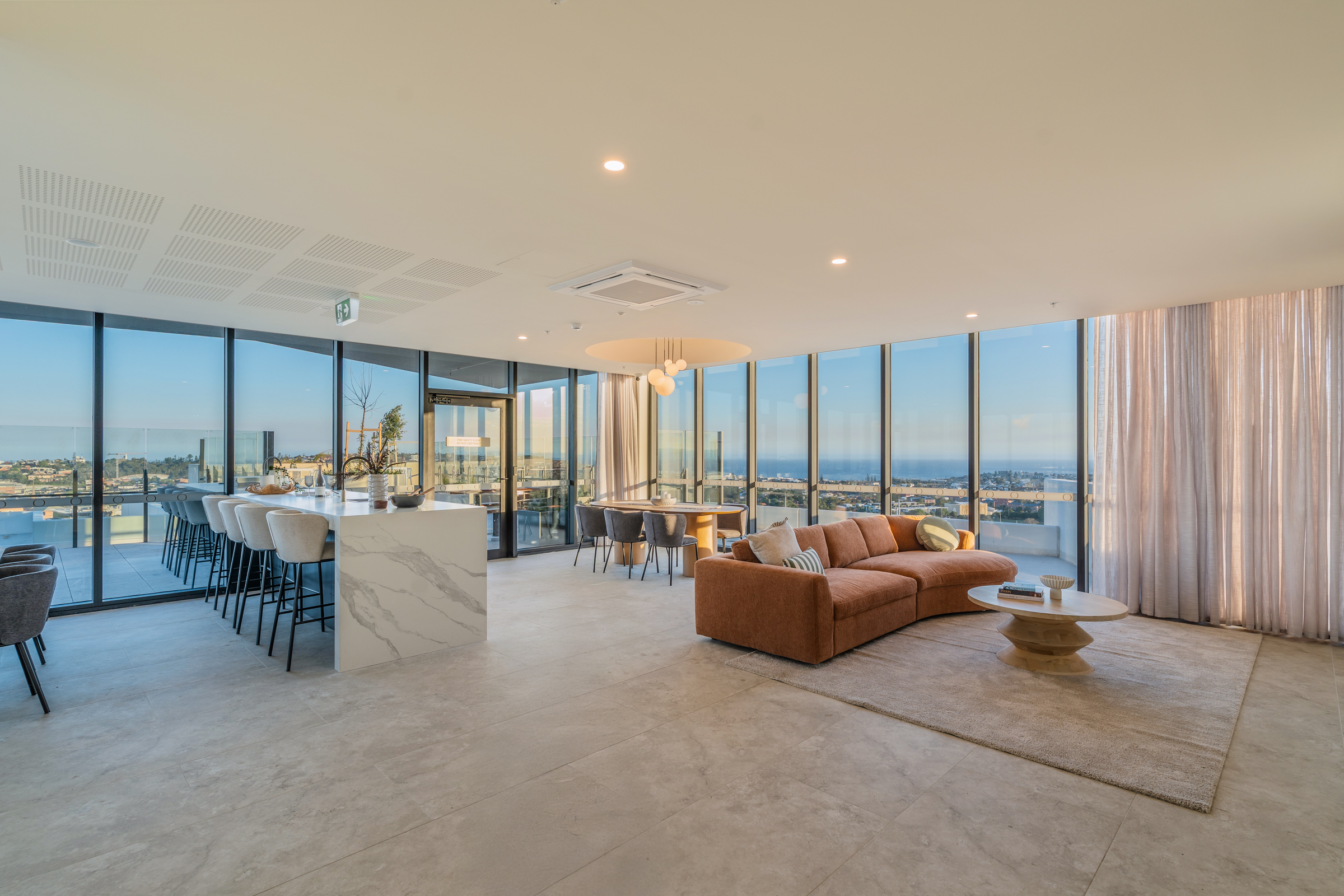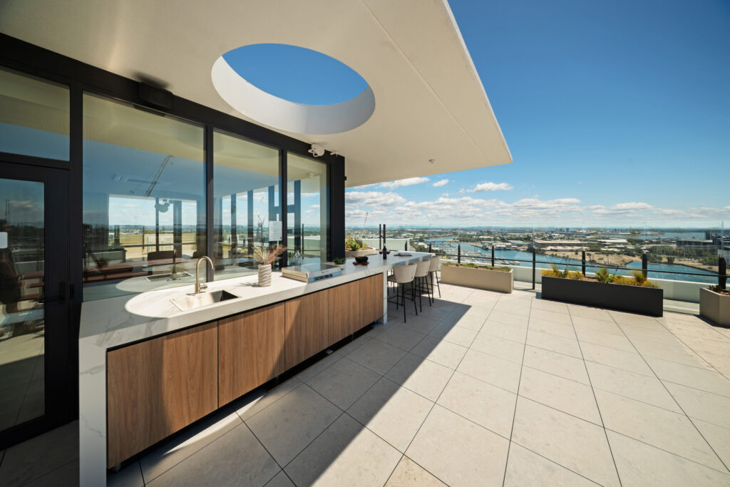 Perched high above Newcastle, the rooftop terrace is a private sanctuary with panoramic harbour and ocean views. Morning yoga, sunset drinks, or weekend celebrations — this exclusive space transforms everyday moments into something extraordinary.